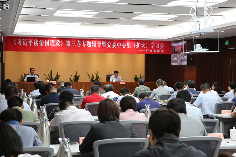 9月14日,省沿海集團黨委舉辦《習(xí)近平談治國理政》第三卷專題輔導(dǎo)會暨黨委中心組(擴大)學(xué)習(xí)會,聽取省委黨校教授李建柱關(guān)于深入學(xué)習(xí)貫徹《習(xí)近平談治國理政》第三卷的專題輔導(dǎo)報告。集團黨委書記、董事長鄧東升主持會議。集團領(lǐng)導(dǎo)班子成員,本部各部門、所屬企業(yè)黨員干部職工共360余人參加了專題輔導(dǎo)會。