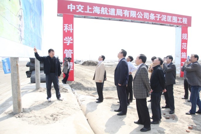 3月28日,在這樣一個(gè)風(fēng)和日麗,陽(yáng)光明媚的日子里,江蘇省沿海地區(qū)發(fā)展辦公室主任、省沿海開(kāi)發(fā)集團(tuán)董事長(zhǎng)梁學(xué)忠又一次來(lái)到條子泥項(xiàng)目工地,全面考察項(xiàng)目進(jìn)展情況,細(xì)致部署項(xiàng)目近期安排,并慰問(wèn)工程一線施工及監(jiān)理人員。在中交第二航務(wù)工程局條子泥工程施工現(xiàn)場(chǎng),梁董事長(zhǎng)走上新建成的施工鋼便橋,實(shí)地考察了現(xiàn)場(chǎng)港道及閘塘圍堰建設(shè)情況。死生港是條子泥項(xiàng)目區(qū)西域一個(gè)活躍多年的主要港道,鋼便橋橫跨死生港,港汊寬度120米,橋梁主體長(zhǎng)90米。橋梁架設(shè)的成功既解決了三標(biāo)段施工交通受阻于港道的瓶頸,又保留了集團(tuán)公司所屬三倉(cāng)及倉(cāng)東兩個(gè)圍區(qū)的排水通道。而橋東側(cè)6米排水涵洞圍堰的順利完成,是此處新建排水涵洞的重要施工屏障。突破瓶頸、建設(shè)屏障、有序組織、按需部署,梁董事長(zhǎng)在聽(tīng)了三標(biāo)段項(xiàng)目經(jīng)理部的情況介紹后,要求三標(biāo)段在時(shí)序安排上進(jìn)一步提速,在工程質(zhì)量上進(jìn)一步提高,又快又好地完成施工任務(wù)。在二標(biāo)段項(xiàng)目經(jīng)理的陪同下,梁董事長(zhǎng)徒步走到已施工成形的中隔堤?hào)|端,并詳細(xì)詢問(wèn)了條南片東堤建設(shè)情況。條南片東堤因地勢(shì)低洼,港汊交織,圍堤施工受潮水侵蝕及影響較大。但東堤的建設(shè)又是條南片3.3萬(wàn)畝圍區(qū)成形的關(guān)鍵。在聽(tīng)取了施工方關(guān)于東堤施工及龍口布設(shè)方案的情況匯報(bào)后,梁董事長(zhǎng)認(rèn)為目前東堤棱體還不能達(dá)到阻擋潮水的要求,要進(jìn)一步加速施工部署、加強(qiáng)施工力量、加快施工節(jié)奏。“一定要確保在四月中旬完成龍口封堵”,梁董事長(zhǎng)對(duì)所有陪同考察的管理及施工人員提出了明確的要求。不顧一路風(fēng)沙顛簸,沒(méi)有片刻休息停留,梁董事長(zhǎng)一行又來(lái)到位于項(xiàng)目最南端的一標(biāo)段。工程施工及監(jiān)理人員匯報(bào)了一標(biāo)段除300米港汊施工段正在全力進(jìn)行封堵和抬升之外,其余地段施工情況均比較理想,而且港汊段施工也采取了堤心砂取土等特殊工藝,效果較好。梁董事長(zhǎng)聽(tīng)完大家的匯報(bào)后,要求該標(biāo)段施工單位進(jìn)一步加強(qiáng)港汊封堵段施工力量,確保小汛期完成港汊封堵,保證總體節(jié)點(diǎn)目標(biāo)不變。隨后,梁董事長(zhǎng)又向東臺(tái)公司周金陽(yáng)總經(jīng)理了解了方塘河下游港道及條子泥圍區(qū)西側(cè)高涂養(yǎng)殖的有關(guān)情況。時(shí)間已近正午,豪情滿胸正濃,梁董事長(zhǎng)與陪同考察的所有工程建設(shè)者一一握手,勉勵(lì)大家繼續(xù)團(tuán)結(jié)奮斗、攻堅(jiān)克難,為實(shí)現(xiàn)一期工程的圓滿成功而不懈努力。