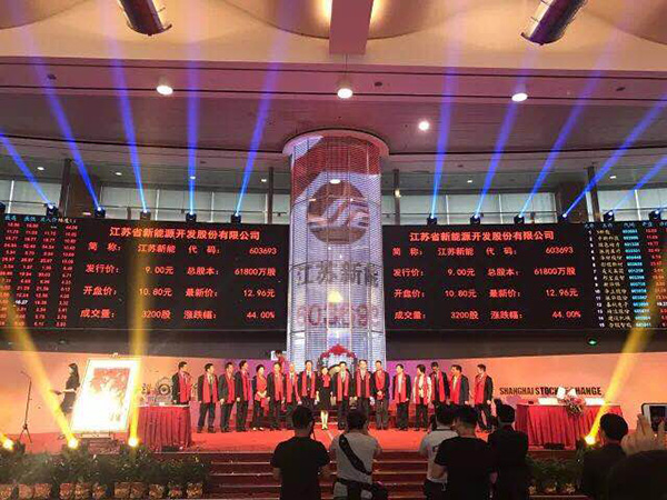 7月3日上午,集團參股企業(yè)江蘇省新能源開發(fā)股份有限公司(股票簡稱為“江蘇新能”,股票代碼“603693”)在上海證券交易所成功掛牌上市。