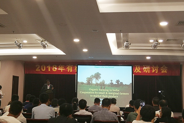 在為期兩天半的理論培訓(xùn)中,來自美國威斯康星大學(xué)、印度國家農(nóng)業(yè)發(fā)展委員會、農(nóng)業(yè)部全國農(nóng)技推廣中心、中國農(nóng)業(yè)科學(xué)院、農(nóng)業(yè)部南京農(nóng)業(yè)機械化研究所、南京農(nóng)業(yè)大學(xué)等多家高校、科研院所的教授、研究員傳經(jīng)送寶,其重點圍繞國內(nèi)外有機農(nóng)場發(fā)展現(xiàn)狀及相關(guān)政策、農(nóng)作物種植技術(shù)、病蟲草害有機防治及肥料管理方案、智慧農(nóng)場運營及種植管理體系、農(nóng)產(chǎn)品銷售方式等主題進行培訓(xùn)及研討,細化為“現(xiàn)代農(nóng)機裝備與有機農(nóng)業(yè)機械化生產(chǎn)技術(shù)”、“有益微生物驅(qū)動的全程有機、綠色果蔬種植體系”、“有益微生物驅(qū)動的有機種植體系在水稻上的應(yīng)用”、“有益微生物驅(qū)動的全程水稻有機種植體系”、“有機種植蔬菜育苗技術(shù)”、“互聯(lián)網(wǎng)+思維下的智慧農(nóng)業(yè)”、“稻田小龍蝦生態(tài)高效種養(yǎng)技術(shù)”等12個專題講座。會議期間,來自全國各地的4家單位分享其有機種植經(jīng)驗,會務(wù)組組織與會代表參觀有機農(nóng)場。