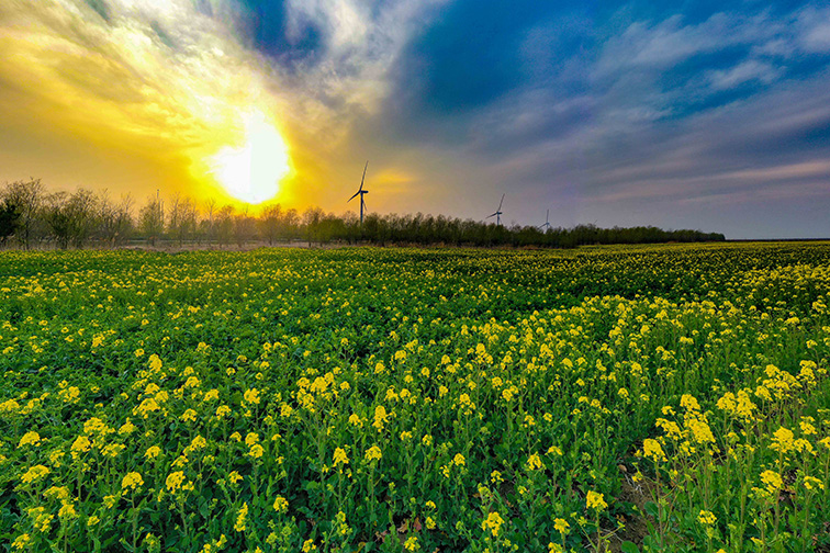 春分麥起身,一刻值千金。30公里之外的省沿海集團(tuán)農(nóng)發(fā)金東臺(tái)分公司,也迎來(lái)了小麥拔節(jié)的季節(jié)。幾場(chǎng)春雨過(guò)后,及膝高的麥苗厚厚地鋪在田野上,引著清新的泥土氣息,鉆進(jìn)了風(fēng)里。恰是這一陣春風(fēng),吹開(kāi)了千畝金黃。黃萼裳裳綠葉稠,一旁的油菜花田正襯著夕陽(yáng)余暉,氤氳著春日里的熱烈。