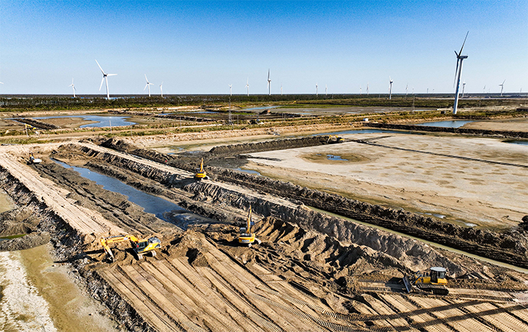 “蘇湖熟,天下足。”經(jīng)濟(jì)大省江蘇是全國(guó)聞名的“魚米之鄉(xiāng)”,近年來,隨著經(jīng)濟(jì)發(fā)展和城鎮(zhèn)建設(shè),土地開發(fā)強(qiáng)度隨之增加,江蘇人多地少的矛盾日漸突出。江蘇土地總面積占全國(guó)的1.12%,人口總數(shù)占全國(guó)的5.75%,人均占有耕地僅0.86畝,逼近聯(lián)合國(guó)糧農(nóng)組織確定的人均耕地0.8畝警戒線。作為省級(jí)沿海開發(fā)主力軍,江蘇省沿海開發(fā)集團(tuán)勇挑為全省提供后備土地資源的大梁,在鹽城東臺(tái),集團(tuán)倉(cāng)東土地整治項(xiàng)目(一期)建設(shè)現(xiàn)場(chǎng)一派緊張有序的建設(shè)景象,從一張規(guī)劃圖紙到機(jī)器轟隆,這里正實(shí)現(xiàn)從鹽堿地向高標(biāo)準(zhǔn)農(nóng)田邁進(jìn)的蛻變。